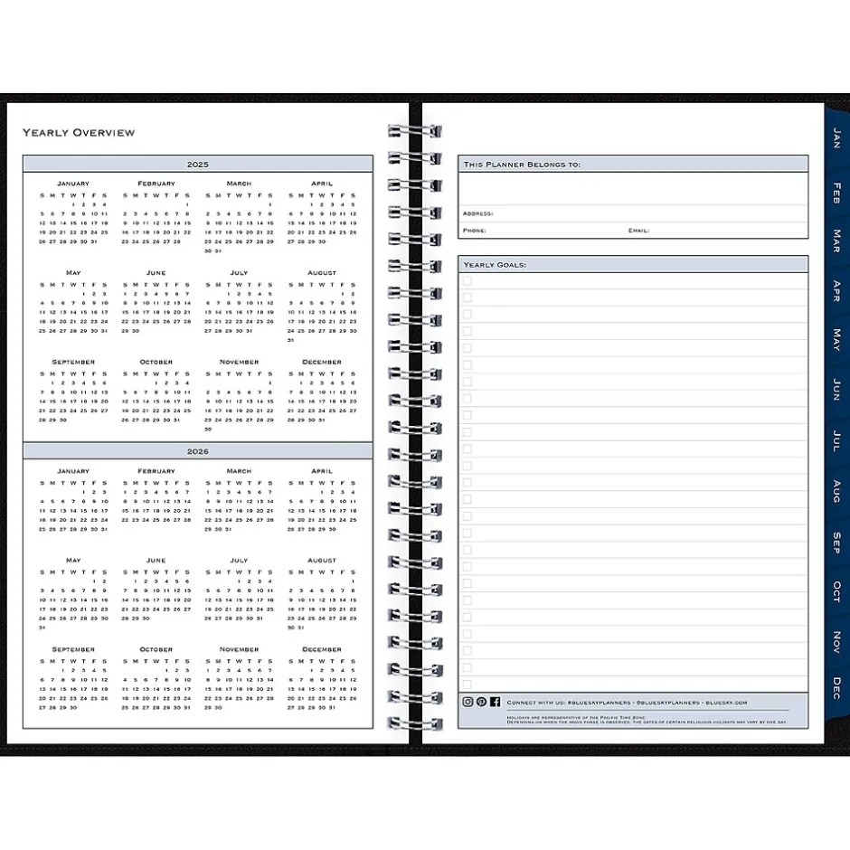 Plan to impress with a refillable planner portfolio. Designed to secure important papers, this professional agenda from Blue Sky has a pen loop and storage pockets for documents and business cards. Includes a removable 2025 weekly and monthly planner.