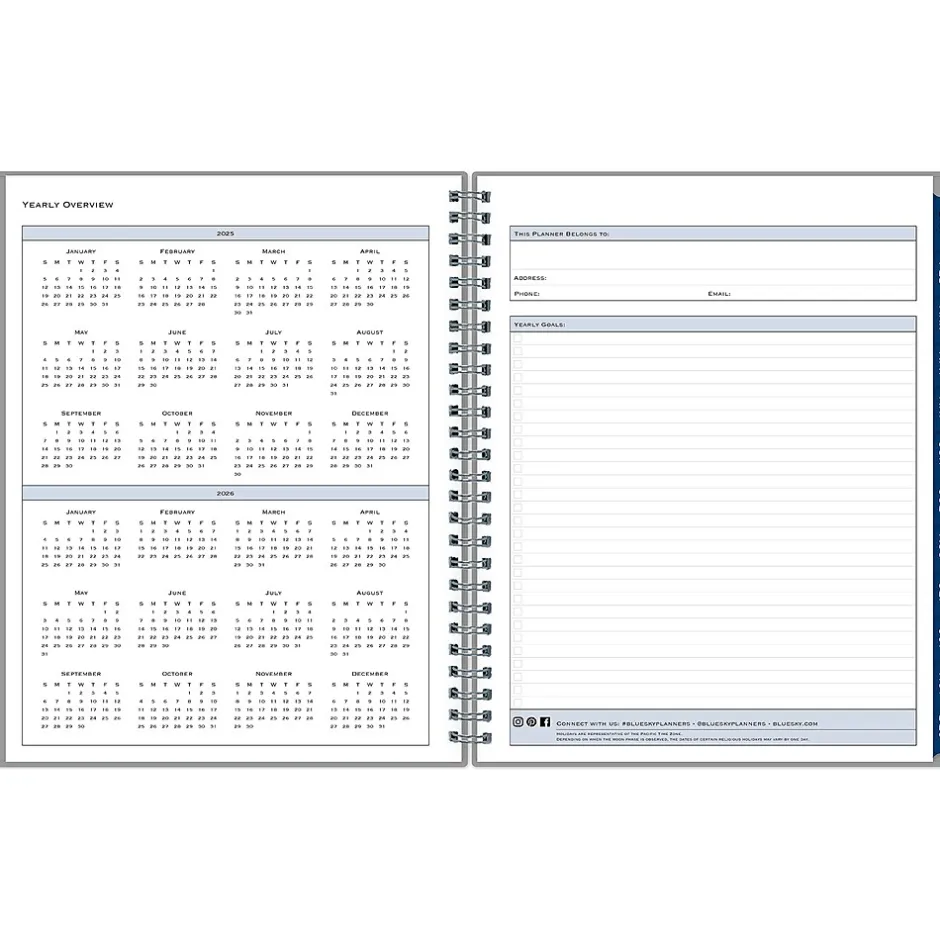 - 30 pages for notes, yearly overview, goals, contacts, and important dates