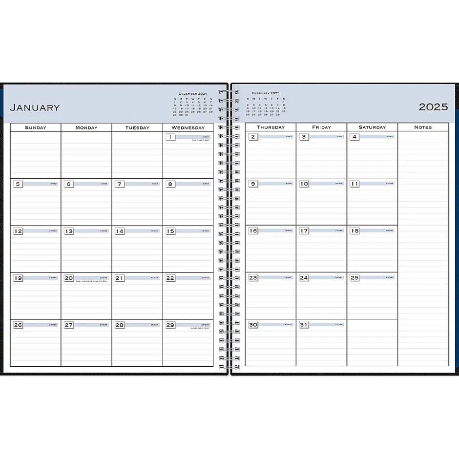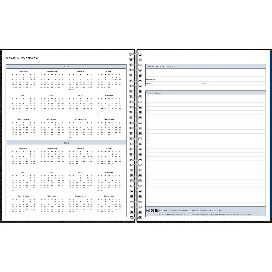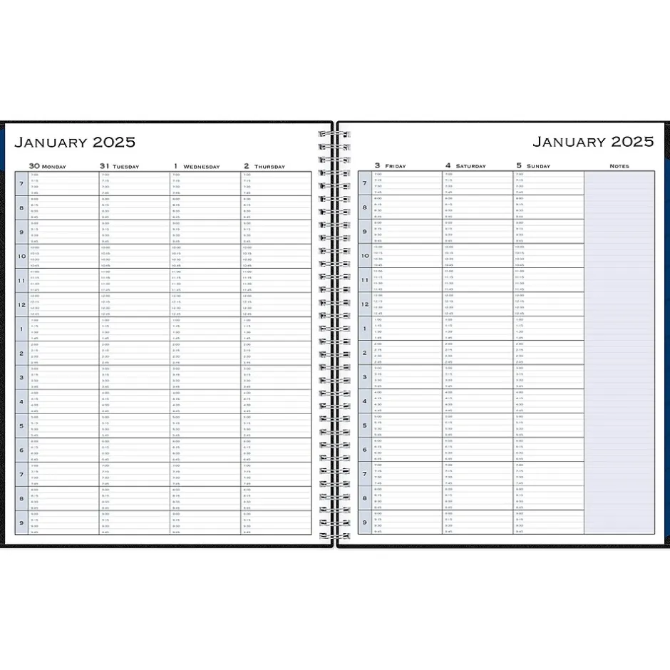 Block out time for meetings with a professional appointment book from Blue Sky. Perfect for office schedules or busy individuals, this 2025 appointment book lets you plan every day of the year in 15-minute increments. Vertical weekly views start at 7:00 a.m. and end at 9:45 p.m.