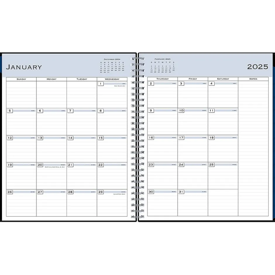- Offers one month per two pages, with space for notes and quick reference calendars
