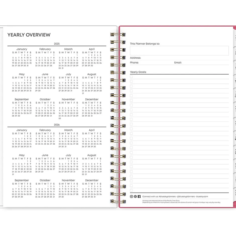 A simple planner for busy schedules. Organize your tasks and time with the Amalia weekly and monthly 2025 planner from Blue Sky. Use the ruled weekly layouts, tabbed monthly views, and notes pages to effectively manage your schedule and achieve your goals.