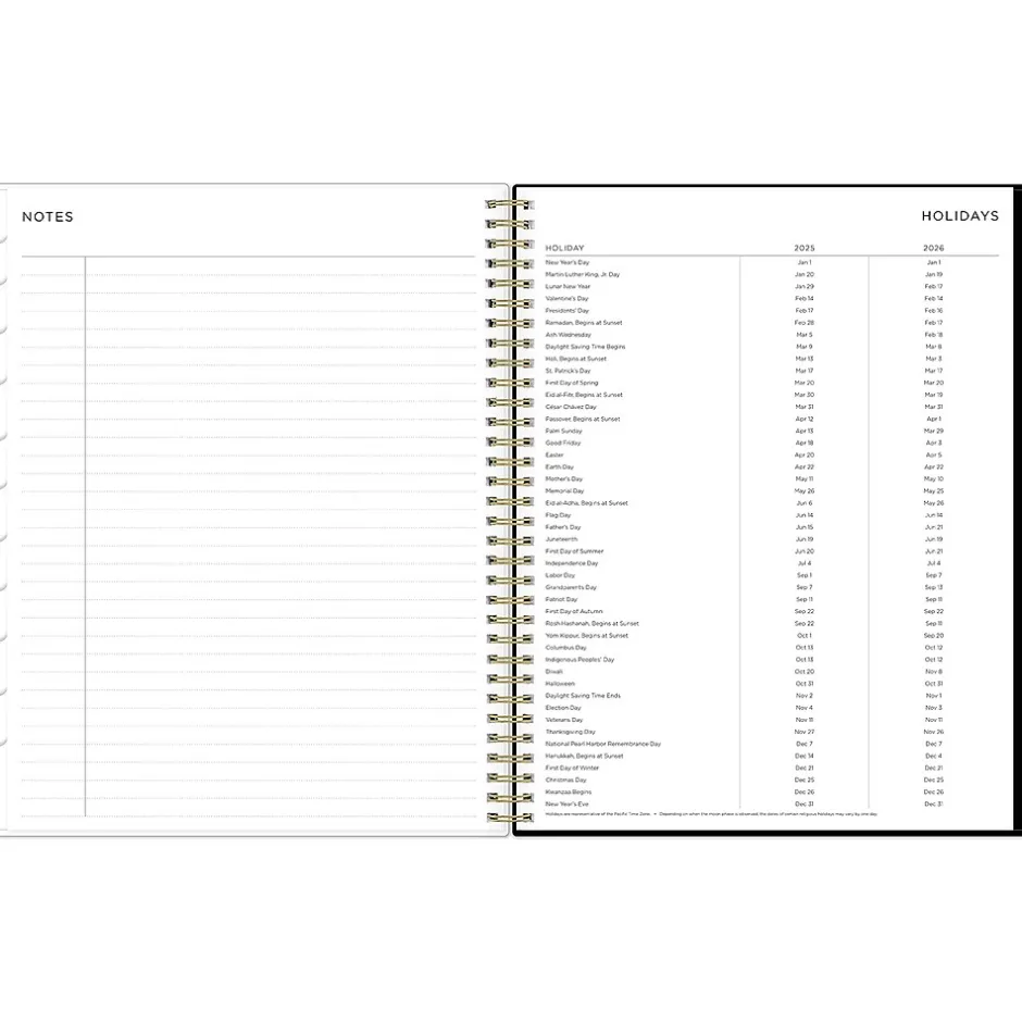 - Features two-page weekly and monthly spreads, with space for notes and quick reference calendars
