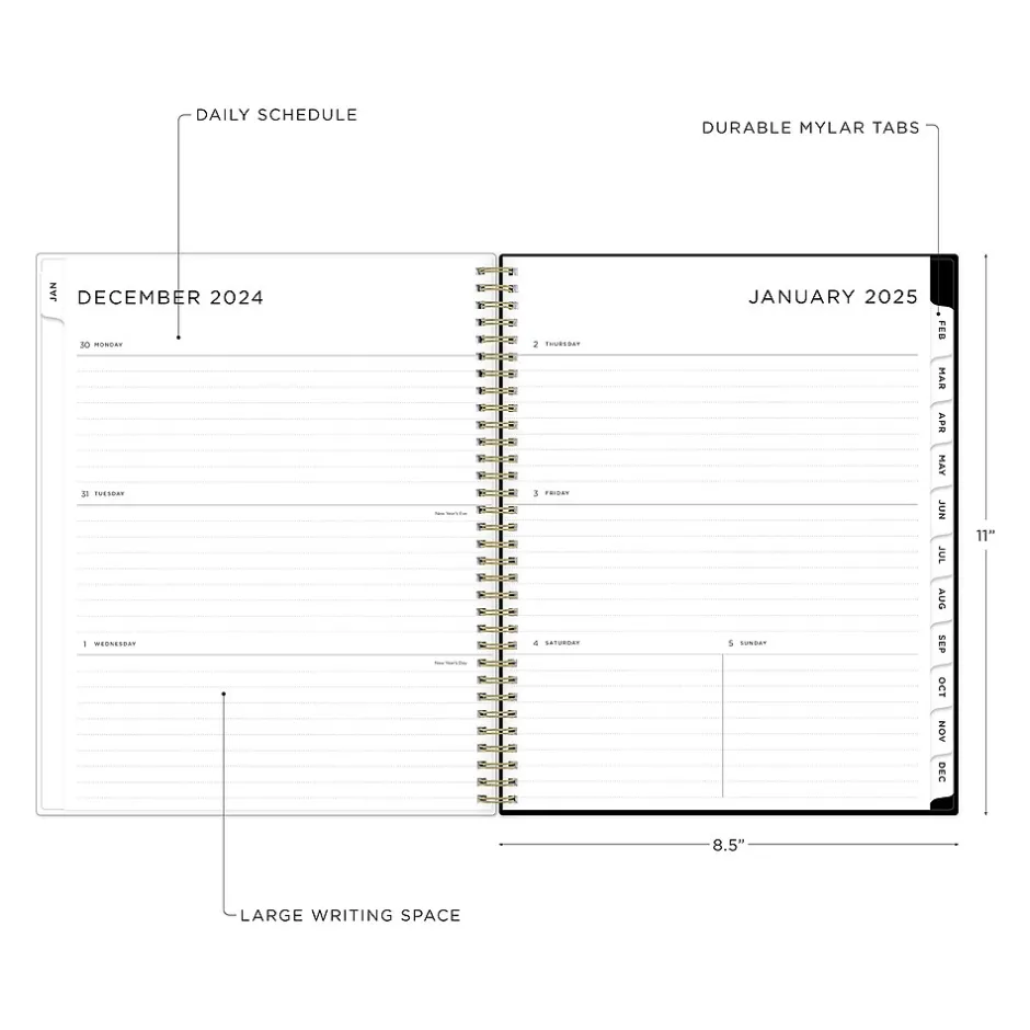 Organize tasks and time with the 2025 Blue Sky Ashley G Small Dots planner that includes a storage pocket. Use ruled weekly layouts, tabbed monthly views, and notes pages to manage your schedule and achieve your goals.