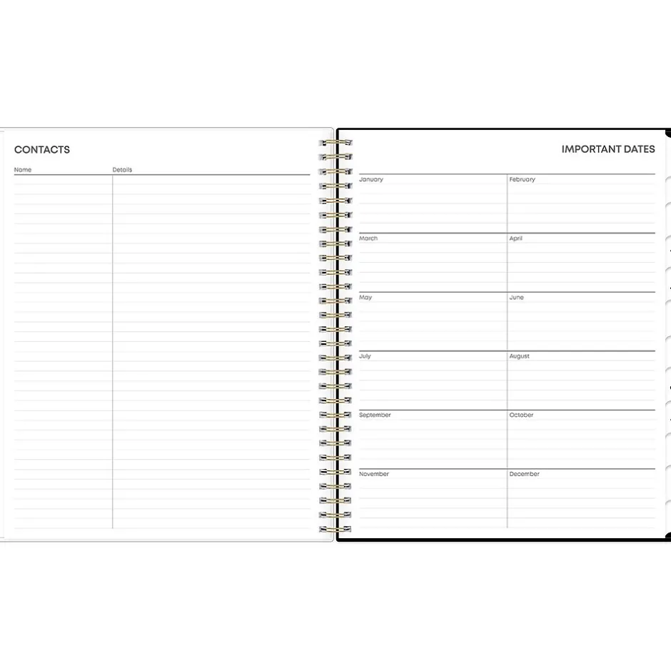 A simple planner with monthly calendars and a clear pocket cover. Track events with the Baccara Dark 2025 monthly planner from Blue Sky, featuring 12 tabbed monthly views and plenty of room for notes.