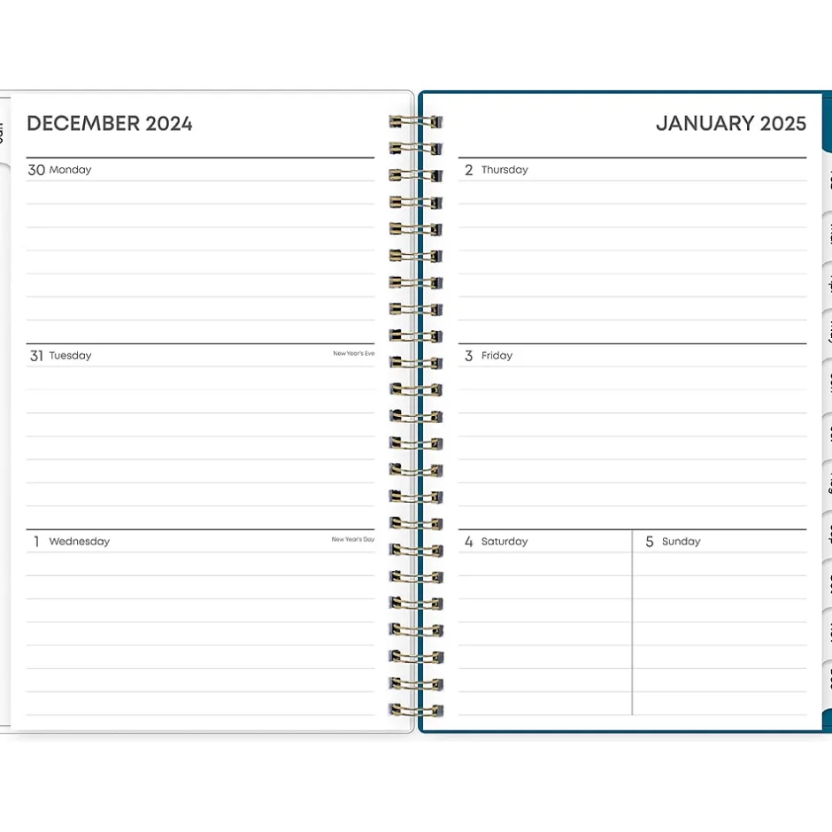 A simple planner for busy schedules. Organize tasks and time with the 2025 weekly and monthly Bakah Blue planner from Blue Sky. Use the weekly layouts, tabbed monthly views, and notes pages to effectively manage your schedule and achieve your goals.