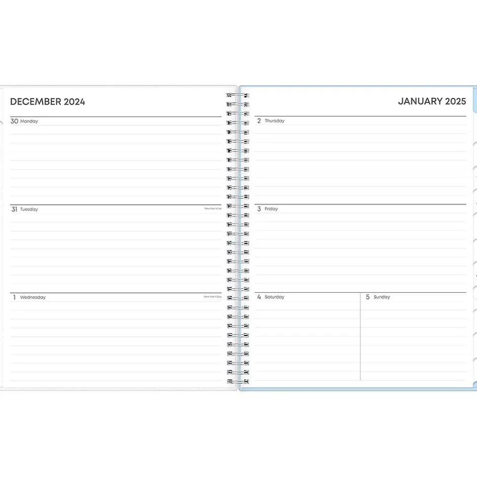 Organize tasks and time with the 2025 Blue Sky Blue Block planner that includes a storage pocket. Use lined weekly layouts, tabbed monthly views, and notes pages to manage your schedule and achieve your goals.