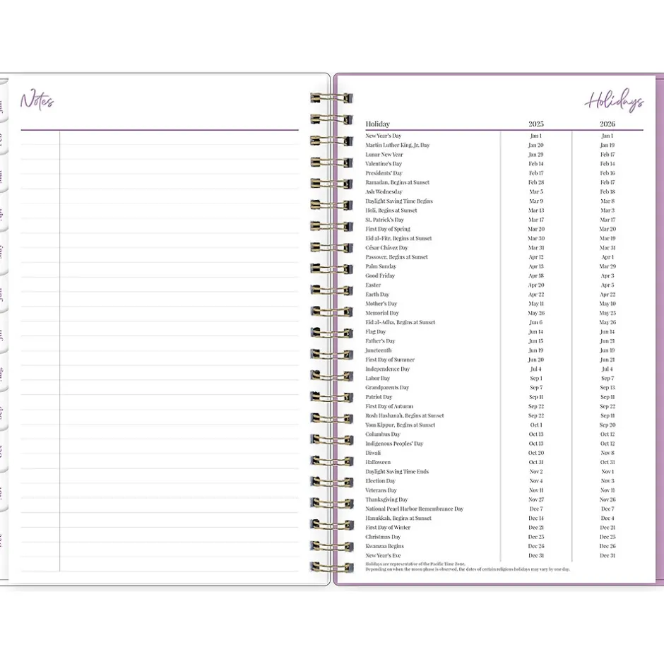 - Features two-page weekly and monthly spreads, with space for notes and quick reference calendars