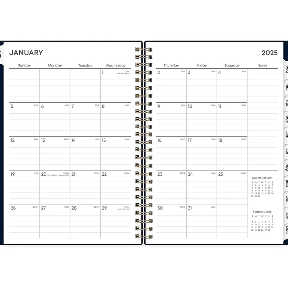 The best of both worlds: this planner features a built-in notebook. The 2025 Blue Sky Cheeyna all-in-one planner comes with 30 ruled pages for notes, weekly pages, and tabbed monthly views. Perfect for people who love to write, this planner is a notebook, organizer, and planner all rolled into one. Track dates, goals, and feedback in one convenient place.