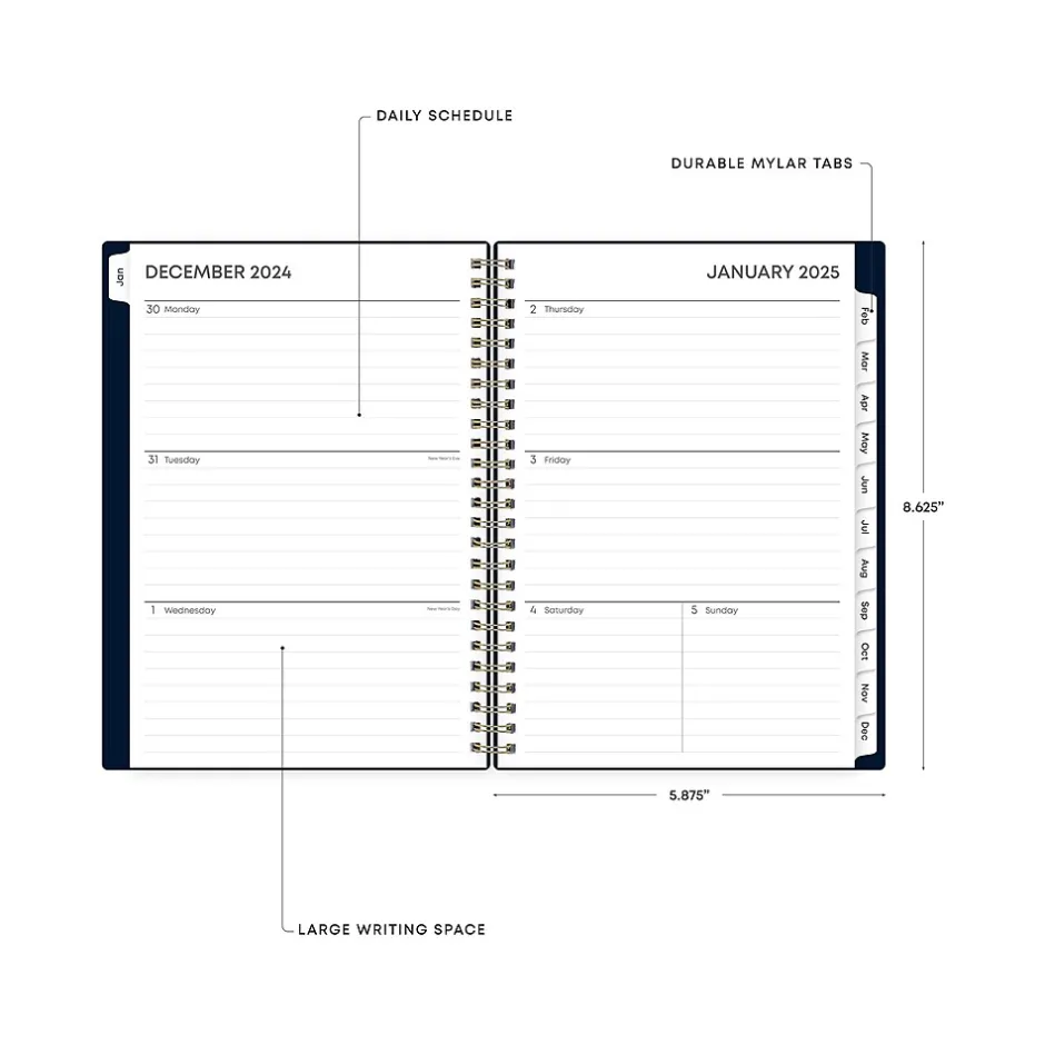 - Features two-page weekly and monthly spreads, with space for notes and quick reference calendars