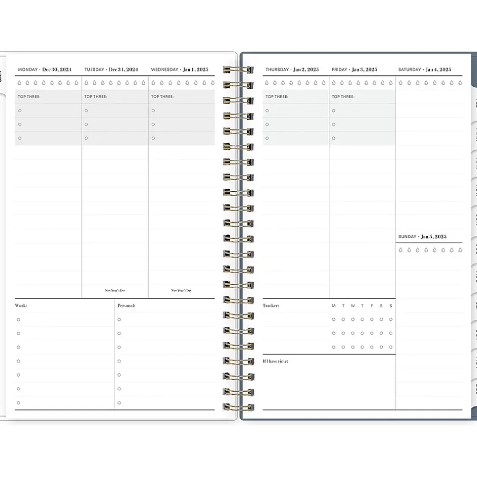 Best for time-blocking, this vertical planner lets you plan chronologically. Organize tasks and time with the 2025 Cocolie planner from Blue Sky. It features vertical weekly layouts, tabbed monthly views, and notes pages to help you manage your schedule and achieve your goals.