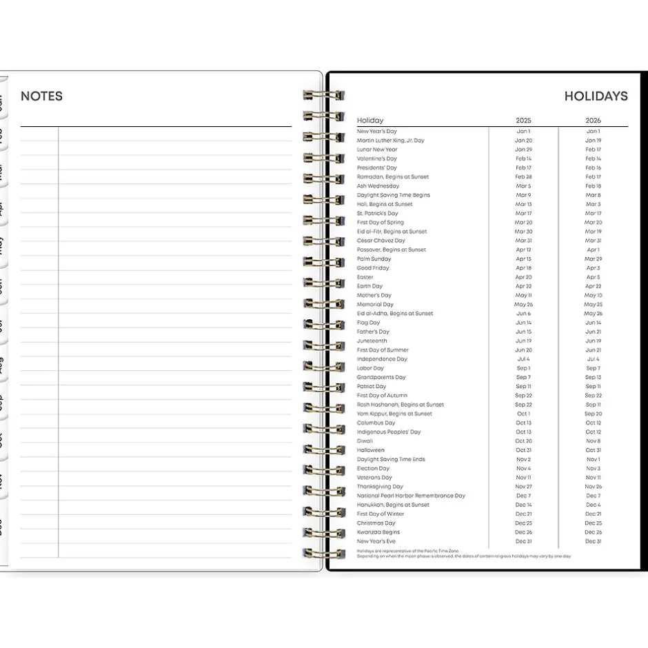 - Offers two-page weekly and monthly spreads with space for notes and quick reference calendars