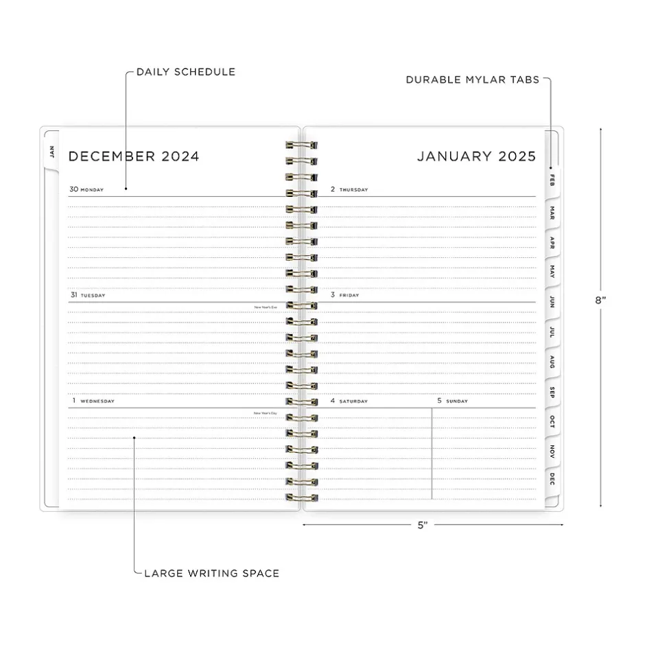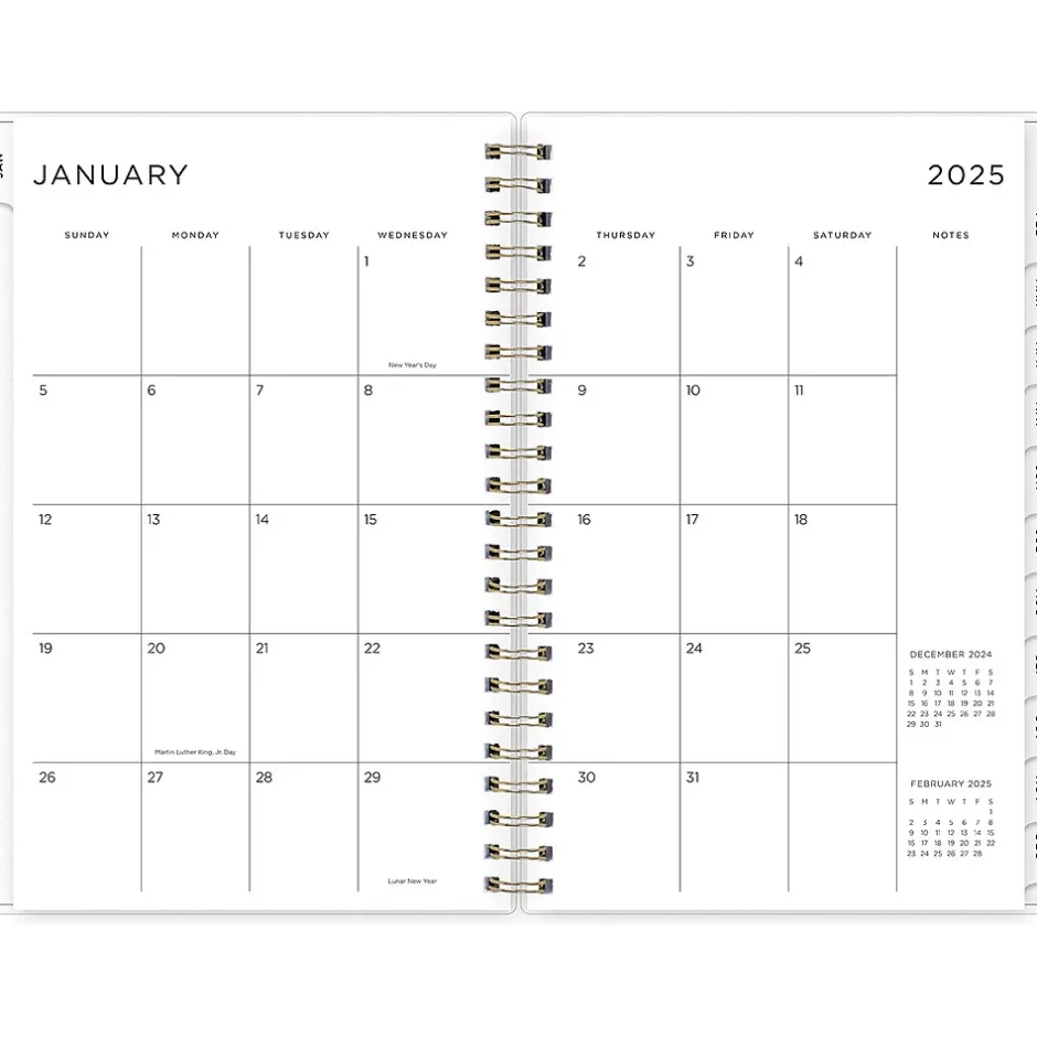 - Features two-page weekly and monthly spreads, with space for notes and quick reference calendars