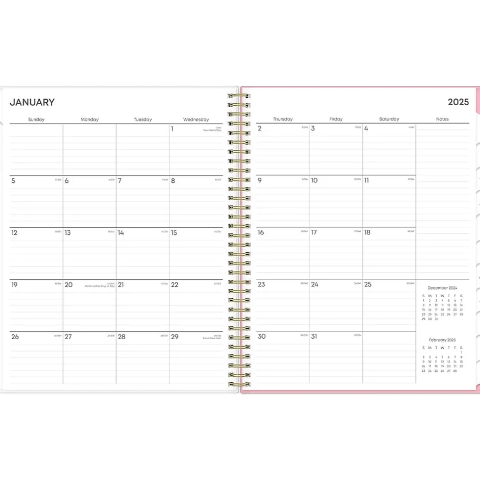 A simple planner for busy schedules. Organize tasks and time with the Mimi Pink weekly and monthly 2025 planner from Blue Sky that includes a storage pocket. Use weekly layouts, tabbed monthly views, and notes pages to effectively manage your schedule and achieve your goals.