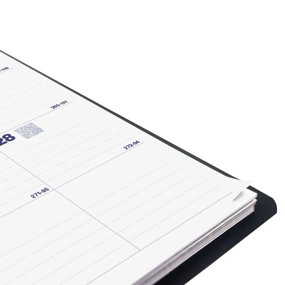 The future of planning is here with the Blueline Plan & Link 16-month monthly planner. Just plan, scan, click, and go for 16 months of planning from September 2024 to December 2025. Link your planner to your phone using the QR codes printed in the planner for seamless pen to technology synchronization. Write in your planner, scan the QR code printed on the date, take a picture, and set the date and reminder using the free Blueline Reminder app. The planner features a month to view format, with one ruled block per day. Contains reference calendars of past, current, and following months on each spread, as well as a daily countdown of days passed and days to come, holidays, and phases of the moon. Includes a telephone and address section. The durable lizard-like black cover is constructed with a flexible twin-wire binding for a flat and sturdy writing surface. Contains 50% postconsumer recycled materials. Forest Stewardship Council (FSC) certified to help promote environmentally appropriate, socially beneficial, and economically viable management of the world’s forests. Download the free Blueline Reminder app from the App Store and Google Play, powered by inkLink.