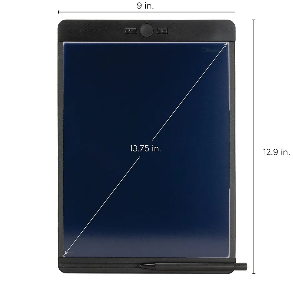 Blackboard is the reusable writing tablet perfect for writing notes, marking up documents or sketching out ideas. The Blackboard smart scan reusable notebook in Letter size comes with an 8.5” x 11” semi-transparent writing surface enabled with Boogie Board’s QuickClear™ technology along with Exact-Erase™ and Erase-Lock features, the Blackboard stylus with an eraser, four easy-to-swap templates and a magnetic penholder. Push the button to clear everything or use the Exact-Erase feature on the writing tablet and stylus eraser to erase exactly what you want—just like a pencil! You can also lock the writing tablet with the Erase-Lock button so you don’t accidentally erase your notes. Scan to save and organize your notes using our Blackboard app for iOS and Android. NEW! Blackboard Cloud Integration – Automatically upload to Dropbox, Google Drive, Evernote & OneNote (on iOS).