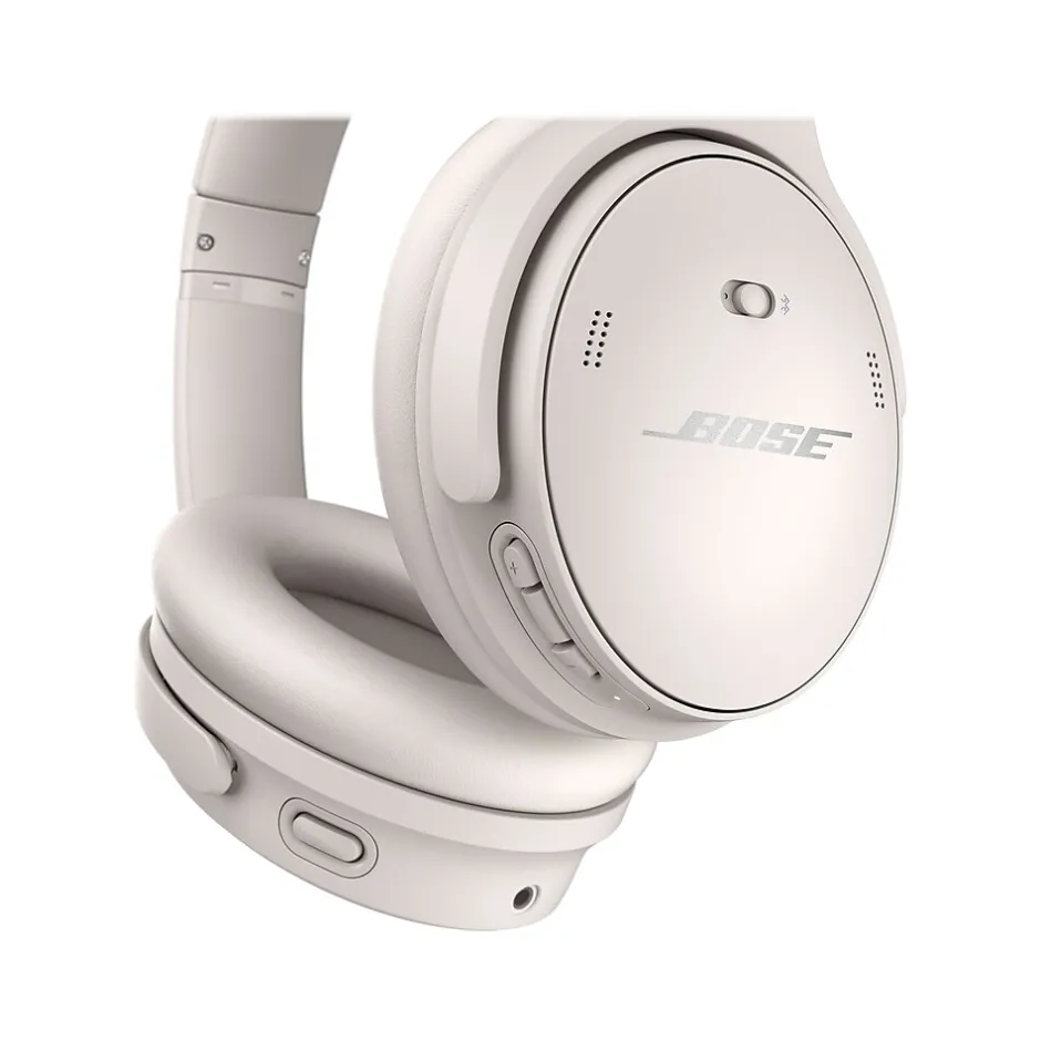 The original noise-canceling headphones are back, with world-class quiet, shockingly light materials, and proprietary technology for deep, clear sound. Bose QuietComfort 45 headphones. It’s an icon reborn. Proprietary Acoustic Noise Canceling technology produces the true quiet you need to hear every detail of your music in high fidelity. Or choose Aware Mode to hear your music and your environment at the same time. TriPort acoustic architecture and Bose innovations like volume-optimized Active EQ add depth and clarity to your music, while maintaining balance at any volume. And materials such as synthetic leather and glass-filled nylon were meticulously selected for comfort and durability. The headphones give you 24 hours of listening time and charge via the included USB Type-C cable. Bluetooth 5.1 maintains a strong connection to your device, and the Bose Music app guides you through setup, lets you personalize settings, and keeps your headphones’ software up-to-date.