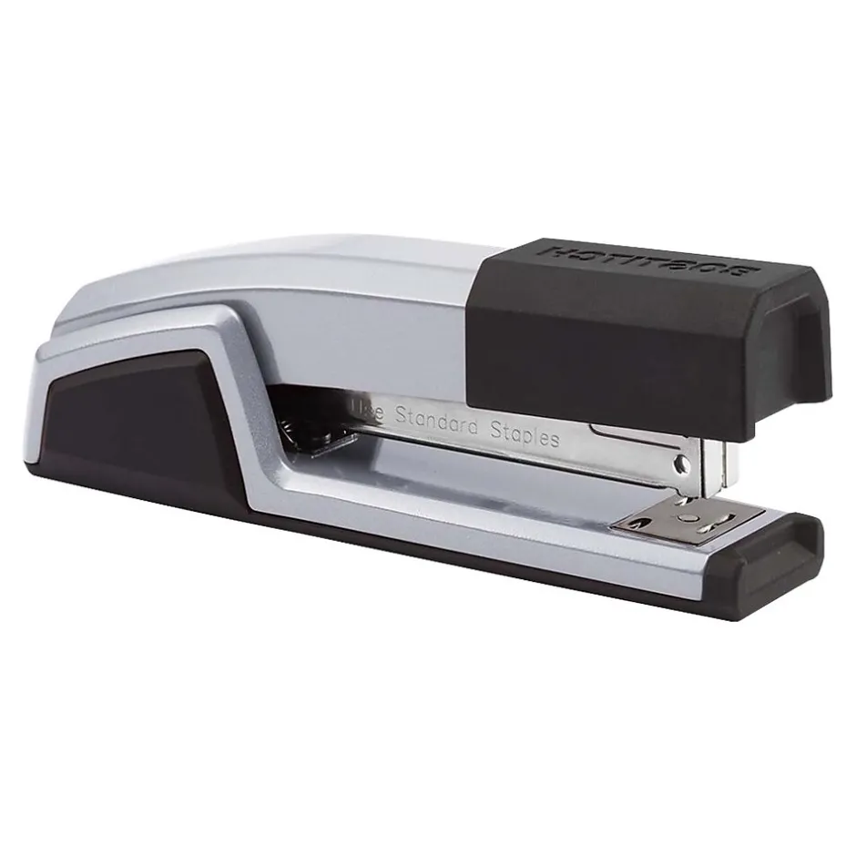 Premium performance without sacrificing aesthetics – the Epic is true to its name. The stapler conveniently has: a swing-out staple EZ Remover for quick fixes, a hidden Staple Store slot to keep extra staples handy, and ability to open 180-degrees for bulletin board tacking and crafting. Made of durable die-cast metal with a soft rubber grip and base, this office necessity is made for comfortable, lasting use. No-Jam technology prevents staple jams for smooth stapling of up to 25 sheets of paper (25% more than standard staplers).