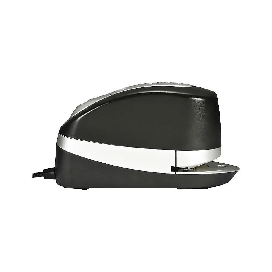 Expand your stapling horizons with speed and style. This attractive electric stapler is packed with all the necessary features. Optical trip firing mechanism provides fast stapling and Anti-Jam floating core eliminates frustrating staple jams. Extra wide lead-in and adjustable paper stop ease the stapling experience and help place the staple exactly where needed. Will staple at normal right angle or at 45 degrees. Stapling tray holds an additional four strips of staples