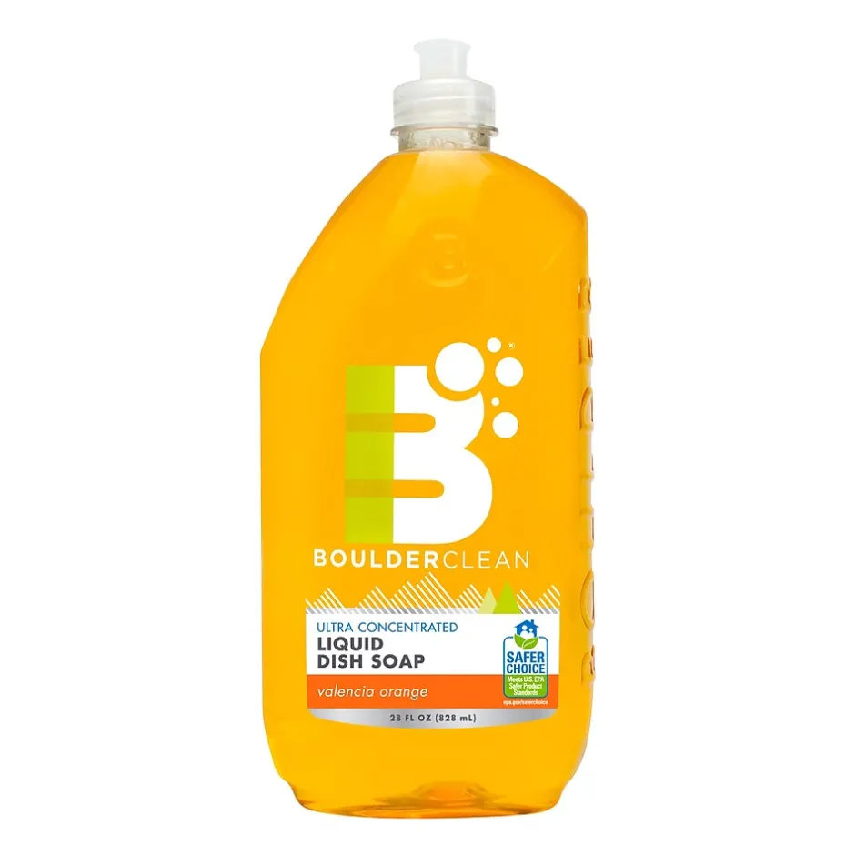 The Boulder Clean high-sudsing dish soap is tough on your dishes yet gentle on your hands. It fights grease and powers through tough dried-on food. The clean-rinse formula results in zero residue left behind. The Valencia orange fragrance will fill your kitchen with a bright scent of fresh fruit. Warning: you may find yourself doing the dishes with a smile.