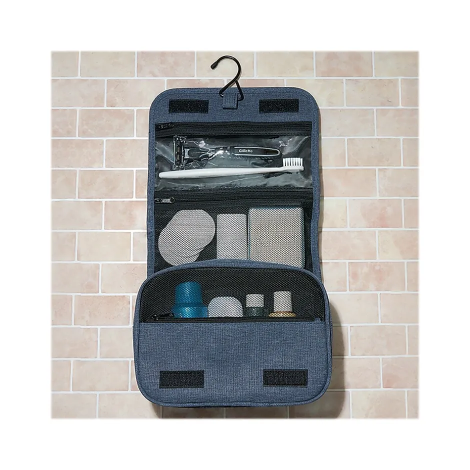 Meet your perfect travel companion. The Brookstone hanging toiletry bag is made of a soft, lightweight fabric and offers zipper security. This versatile design can lay flat or hang from a fixture when open. Features a soft body for easy use and room for lots of toiletries. A purposeful and practical design does not compromise on style.