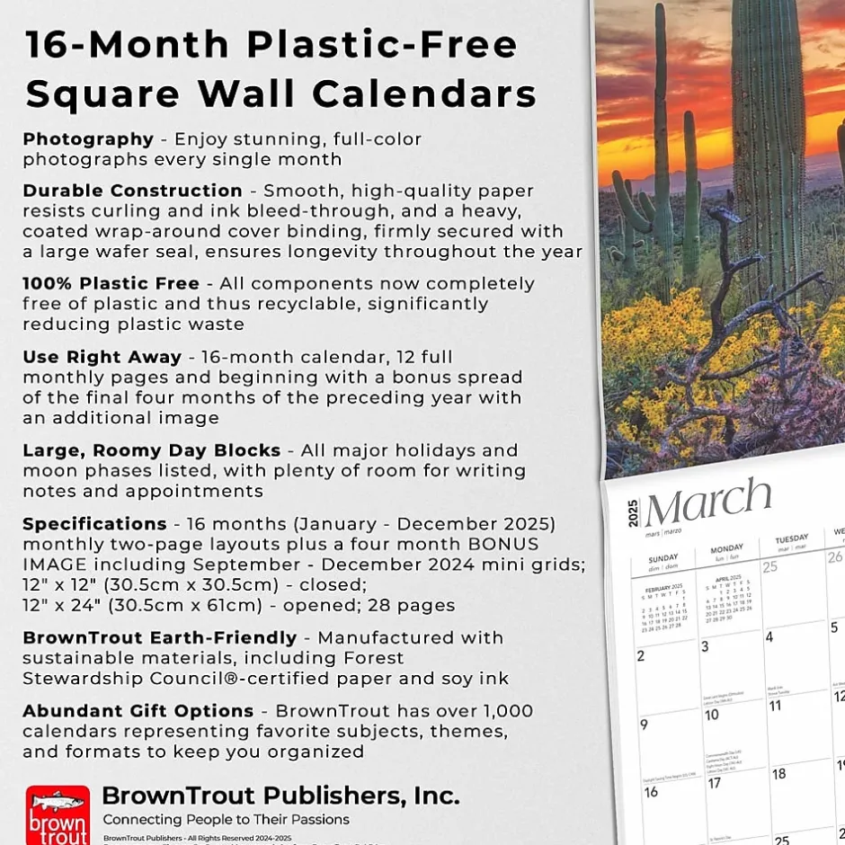 - Abundant Gift Options – BrownTrout has over 1,000 calendars representing favorite subjects, themes, and formats to keep you organized