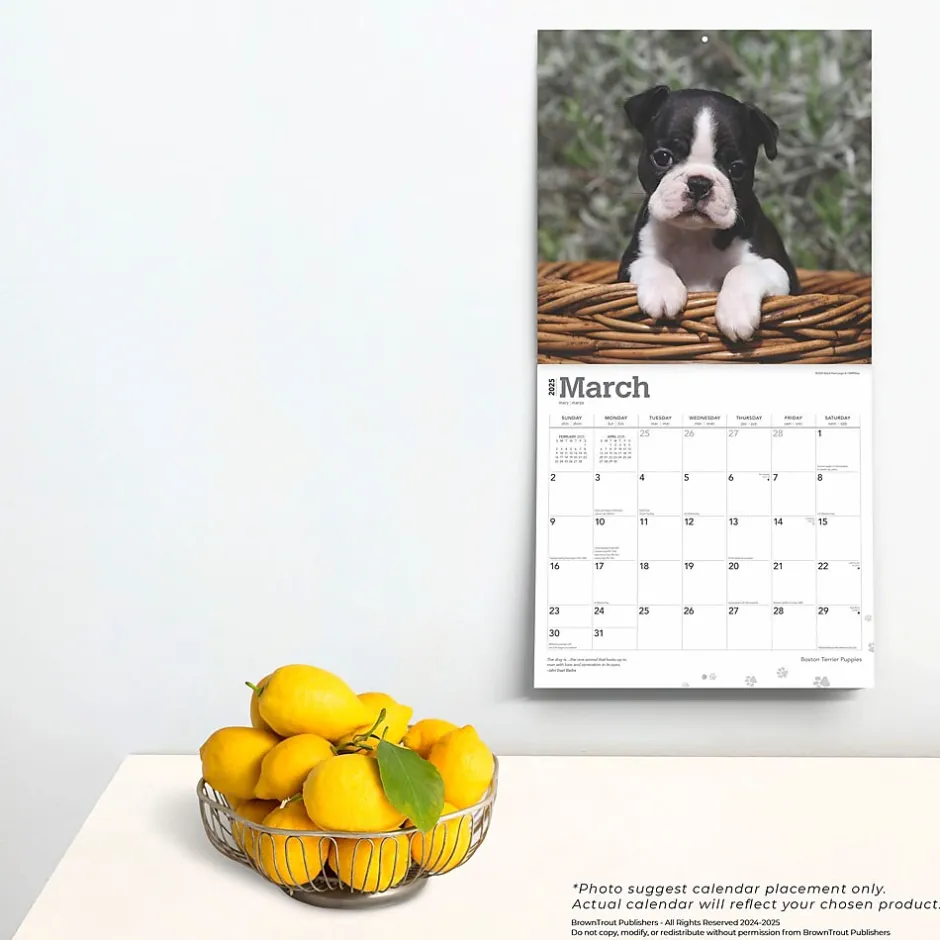 The wide-eyed Boston Terrier puppies in this calendar will grow up to be affectionate dogs. Boston Terriers may be small, but they’re packed with personality. Intelligent and playful, these young dogs are filled with curiosity and joy. The cute pups in this Boston Terrier Puppies calendar are sure to bring lots of joy to dog lovers and pet owners alike.