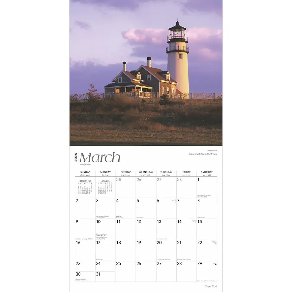 Branching from mainland Massachusetts and forming a hook shape miles out into the Atlantic, Cape Cod is a New England favorite and for good reason. This stretch of land provides a quaint, picturesque, idyllic quality reminding its visitors to take a breather and enjoy life and the beauty in the world. Cape Cod certainly delivers beauty in spades—lush greenery, soft sand dunes, the ocean lapping its shores, and beautiful towns and villages dotting the landscape. This calendar captures the peace and serenity of Cape Cod for you to enjoy without even leaving home.