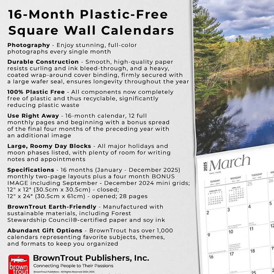 - BrownTrout Earth-Friendly – Manufactured with sustainable materials, including Forest Stewardship Council®-certified paper and soy ink