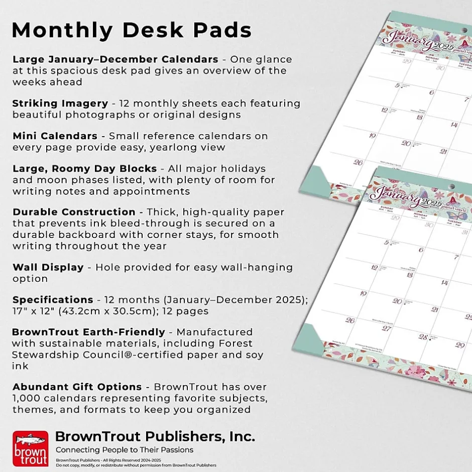 - Specifications – 12 months (January–December 2025); 17″ x 12″; 12 pages