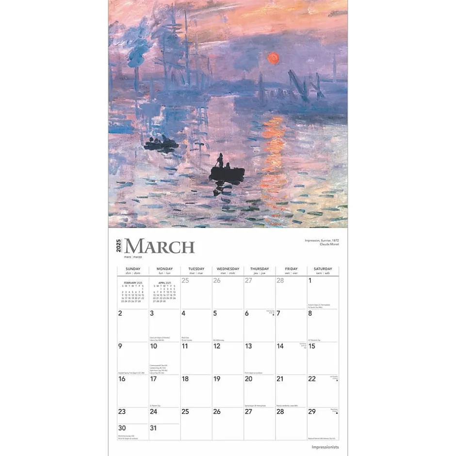 Considering the enormous popularity Impressionist art enjoys today, and considering the major influence it has had on numerous subsequent artistic movements, it is hard to imagine a time when it was looked upon with almost universal disdain. But it was indeed so when an early group of French Impressionists held their first independent show in 1874. Critics, appalled at the short, spontaneous brush strokes and bright colors, called the likes of Monet, Pissaro, Renoir, and Degas “lunatics.” But thankfully these masters pushed forward and stood firm behind their works. Those who love the Impressionists are sure to enjoy this striking calendar.