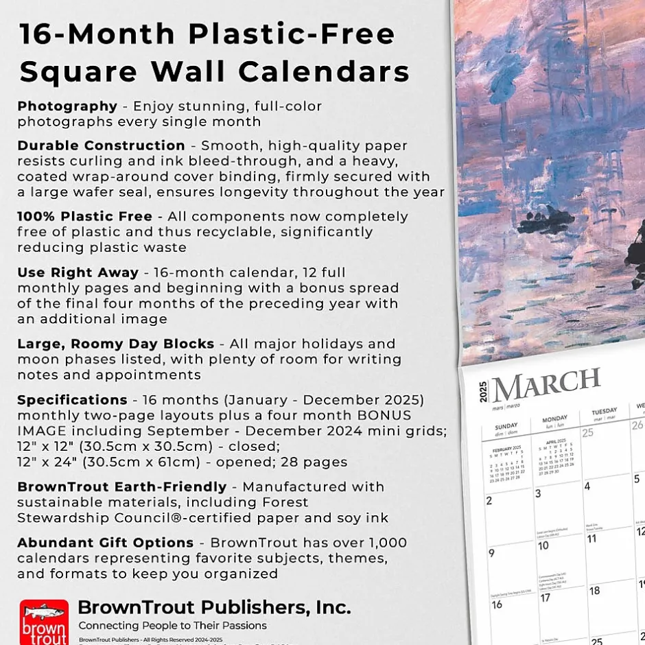 - Abundant Gift Options – BrownTrout has over 1,000 calendars representing favorite subjects, themes, and formats to keep you organized
