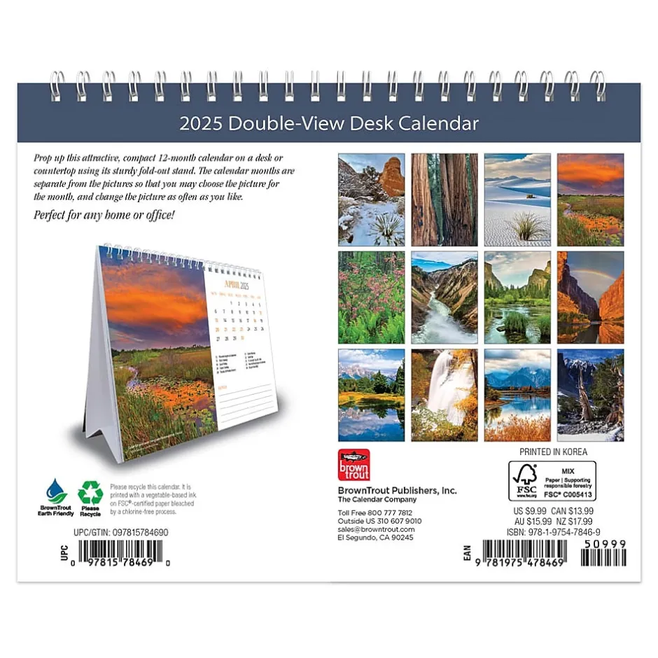 BrownTrout 2025 National Parks 7.5" x 6" Monthly Double-View Easel Desk Calendar, (9781975478469) New