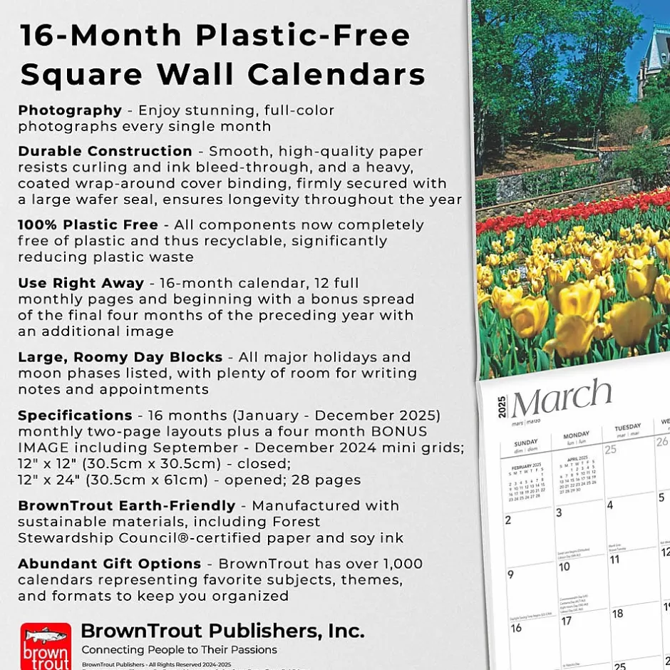 BrownTrout 2025 Tar Heel State North Carolina Places 12″ x 12″ Monthly Square Wall Calendar (9781975483043)