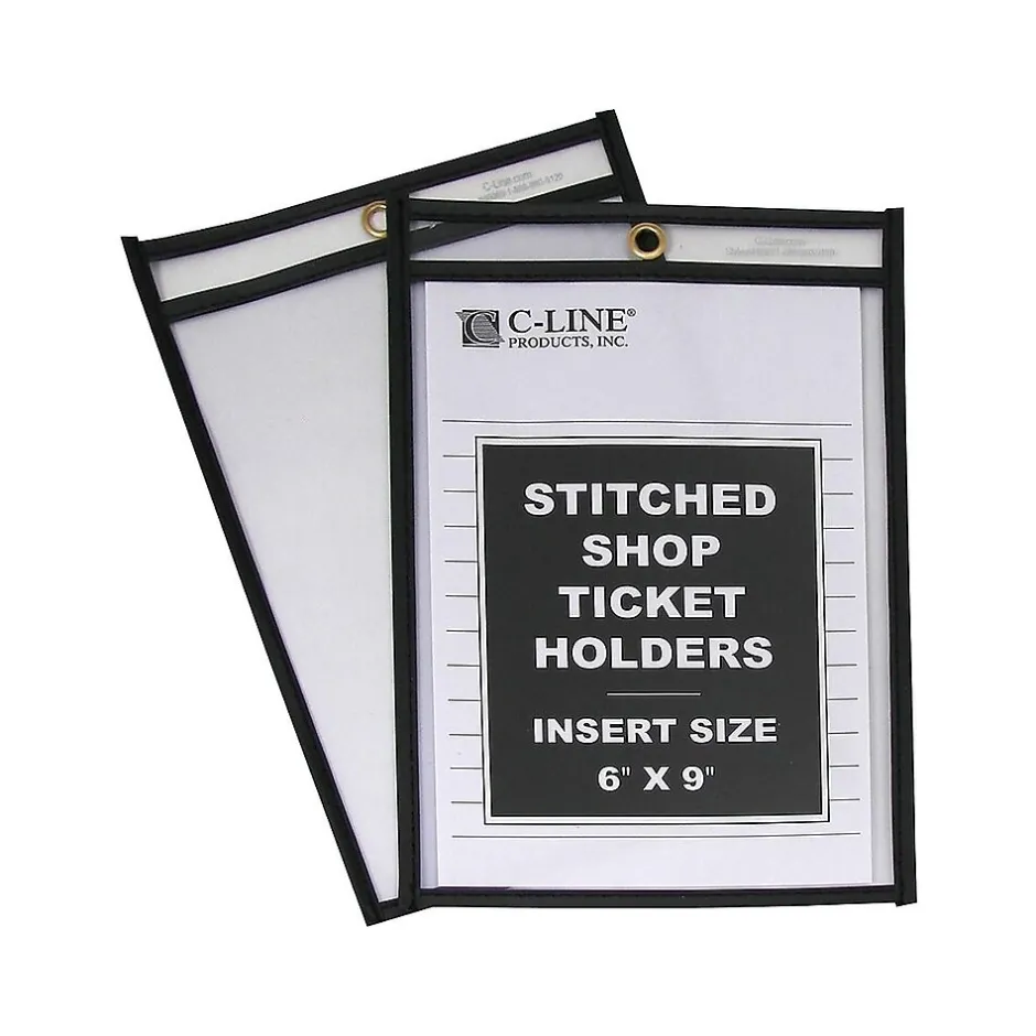Assign repair work to inventory or customer orders with these C-Line vinyl job ticket holders. Reinforced stitched edges ensure long-lasting use, while the clear vinyl construction makes paperwork easy to read while shielding the pages from dirt and damage. Each of these C-Line vinyl job ticket holders comes with a top-mounted eyelet, so you can secure them to shelves with plastic ties or string.