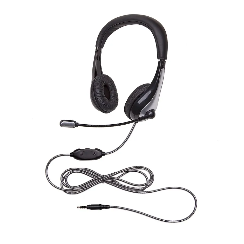 The NeoTech 1025MT is a mainstream, mid-weight headset for general-purpose classroom usage with mobile devices. The 1025MT delivers performance for 1:1 learning, assessment testing and more. Its audio playback is calibrated to enhance the tonal range of the human voice in language learning and its noise-reducing boom microphone captures a student’s verbal response – not their neighbors, making it ideal for language learning, library uses and in computer labs. Compatible with tablets, smartphones, Chromebooks, laptop and desktop PCs & Macs, it provides the versatility you need for BYOD and school-issued device requirements in the classroom.