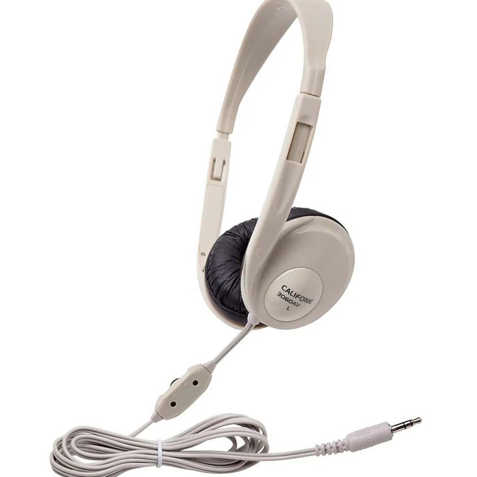 Enjoy clear, rich sound while listening to your favorite soundtrack with the Califone on-ear headphones. These silver wired on-ear headphones feature a 3.5 mm connector that is versatile and connects to different audio devices. With on-ear ear cups, they diminish the surrounding sounds. Featuring a lightweight design, these headphones are easy to adjust and wear.