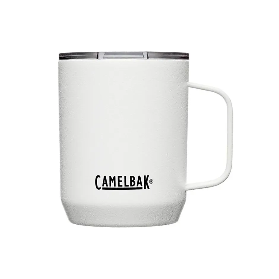 From sunrise to sunset. A strong and durable powder-coat finish keeps the CamelBak Horizon camp mug looking good on the outside, while vacuum insulation keeps drinks at a great temperature on the inside. The tri-mode tumbler lid slides open for variated flow and is spill-resistant when closed. A nonslip silicone pad on the base provides a soft landing on surfaces to avoid scratches and spills.