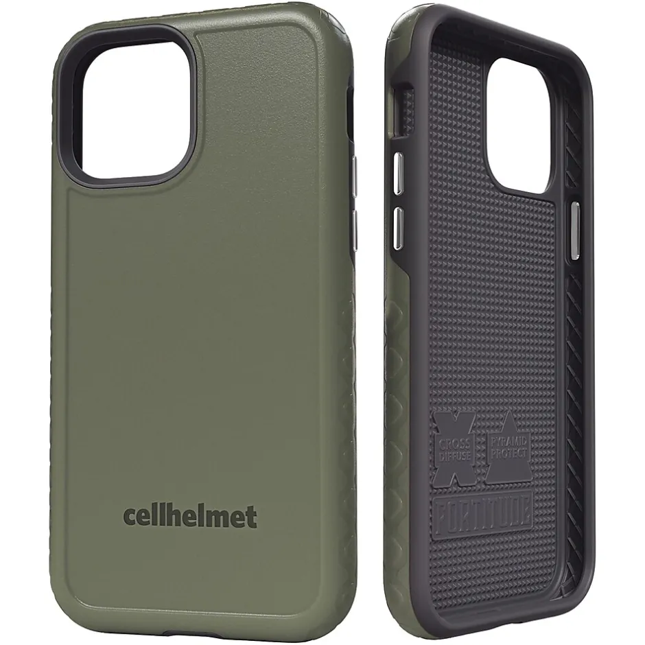 Does your phone have the Fortitude to withstand everyday issues of life? Fortitude Series for iPhone 12/12 Pro in Olive Drab Green from cellhelmet can. Built for the ultimate protection with patented Pyramid Protect and Cross Diffuse technology, this super-protective cell phone case is the one you need. This 2-part, dual-layer case features a tough and rugged nylon outer shell, with a cushioned inner shell made of durable Thermoplastic Polyurethane, or TPU for short. This gives the phone case military-grade protection, all while being slim, not bulky, and easy to slide into your pocket or purse. For the ultimate in dual-layer protection technology, attractive design, and slim features, look no further than the Fortitude case, by cellhelmet.