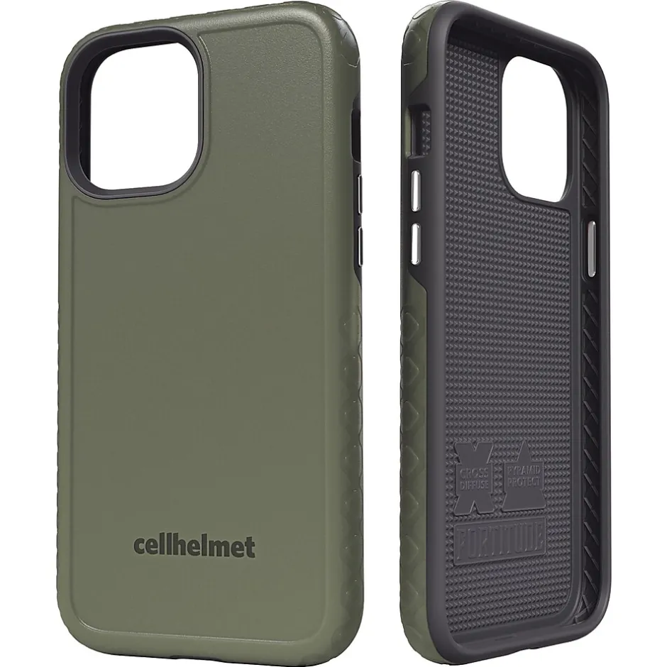Does your phone have the Fortitude to withstand everyday issues of life? Fortitude Series for iPhone 12 Pro Max in Olive Drab Green from cellhelmet can. Built for the ultimate protection with patented Pyramid Protect and Cross Diffuse technology, this super-protective cell phone case is the one you need. This 2-part, dual-layer case features a tough and rugged nylon outer shell, with a cushioned inner shell made of durable Thermoplastic Polyurethane, or TPU for short.This gives the phone case military-grade protection, all while being slim, not bulky, and easy to slide into your pocket or purse. For the ultimate in dual-layer protection technology, attractive design, and slim features, look no further than the Fortitude case, by cellhelmet.
