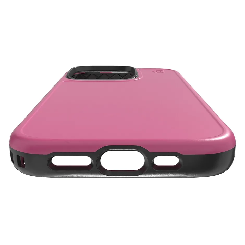 The cellhelmet Vivid Magenta Fortitude Series case for iPhone 15 Pro uses a proprietary co-molded design to deliver a sleek profile, and introduces protective Dynamic Link Technology to double-down on protection. Combine those with a 13-ft. third-party drop-test certification, cellhelmet’s patent-pending Cross Diffuse shock-absorption technology, and an integrated tether hook, and it’s the ideal marriage of protection and utility. To finish things off, it includes built-in MagSafe compatibility for all your quick-attach accessories.