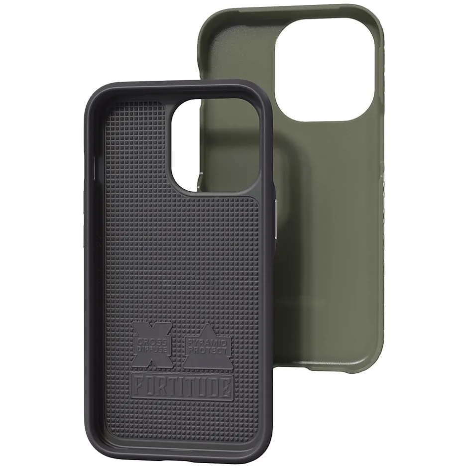 Slim design, ideal protection, and patented technology all add up to the experience of the Olive Drab Green Fortitude Series for iPhone 13 case from cellhelmet. There are many options when protecting your phone, Fortitude beats them all. Specialized Thermoplastic Polyurethane (TPU) encases the phone with durable protection, while adding patented Pyramid Protect and Cross Diffuse drop-protect technologies. This impact-certified cell phone case not only protects the phone, but helps you not drop it in the first place, through No Slip Grip, providing a superior feel and ensuring you hold on tight. Finally, cellhelmet has packed all of this awesome action into a slim, streamlined profile that will easily fit in your pocket or purse. Climb that mountain, overcome those obstacles, and breath in the fresh air of the Fortitude Series case!