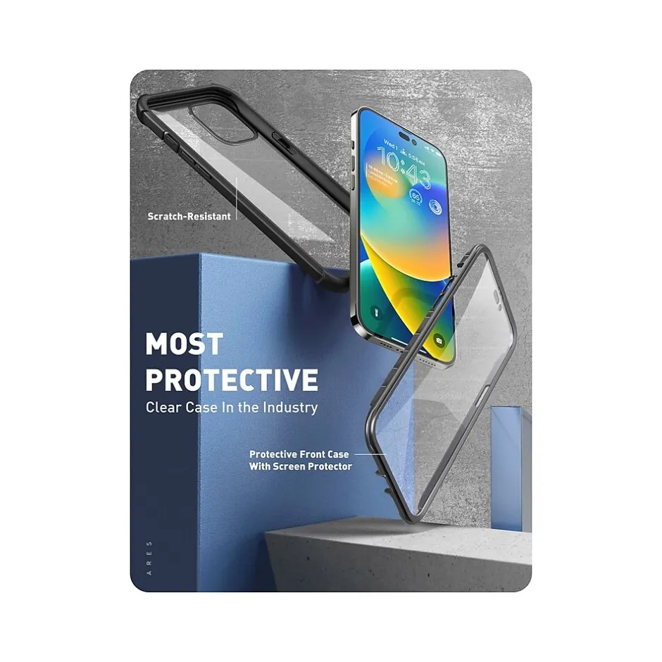 The i-Blason Ares case ensures 360-degree full-body protection for your iPhone 14 Pro Max (6.7″ screen). Raised edges keep the screen and lens off damaging surfaces. Full-body design protects from dust, dirt, and drops.