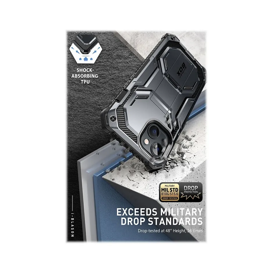 The i-Blason Armorbox rugged case ensures 360-degree full-body protection for your iPhone 14 (6.1″ screen). Precise cutouts allow seamless access to all ports and features. Exceeds military drop standards: drop-tested at 48″ height, 26 times.