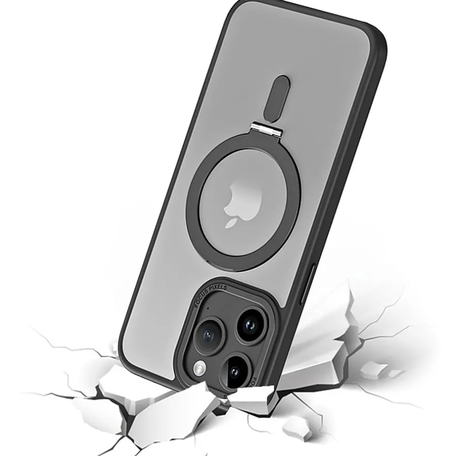 The MagSafe compatible magnetic lock has powerful built-in magnets to enable faster, easier place-and-go wireless charging and a secure lock on any HaloLock or MagSafe accessory. The Camera Guard kickstand is fully adjustable between 0° and 85° to ensure the perfect angle for catching up on your favorite shows. The formfitting, shock-absorbing design grants protection while minimizing bulkiness, and the anti-slip grip helps prevent drops. Featuring a built-in camera hood, this SaharaCase Hybrid-Flex Kickstand series case shields the lens from scratches while enhancing contrast and colors for enriched photo quality.