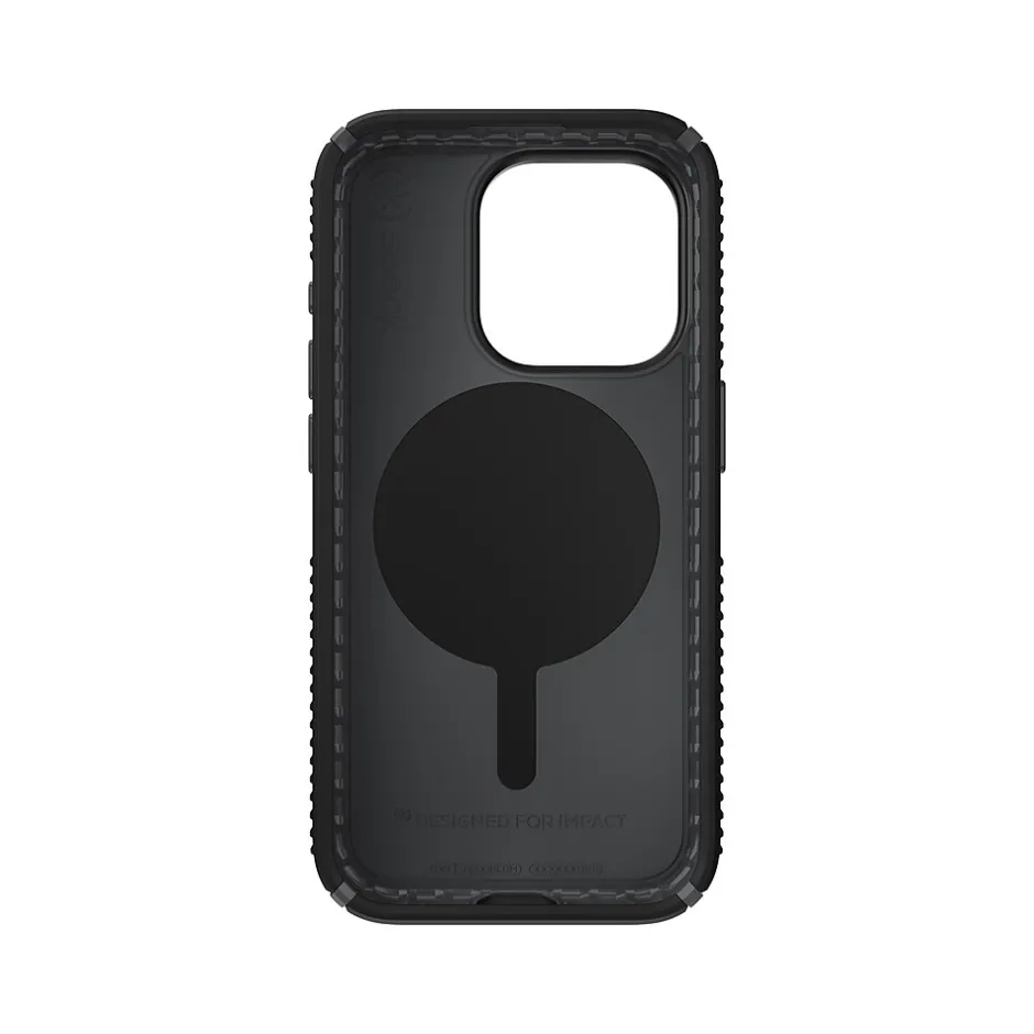 The Speck Presidio 2 Grip MagSafe with ClickLock case is 20% slimmer with no-slip inverted grips, provides 13′ drop protection, and is made from 50% recycled plastics. The case features ClickLock no-slip interlock technology, a MagSafe enhancer, and Microban antimicrobial product protection. Built specifically to work with all Apple MagSafe accessories.