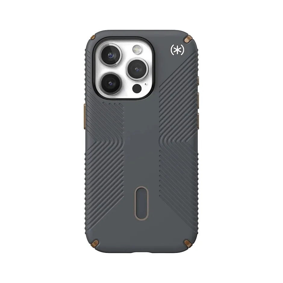 The Speck Presidio 2 Grip MagSafe with ClickLock case is 20% slimmer with no-slip inverted grips, provides 13′ drop protection, and is made from 50% recycled plastics. The case features ClickLock no-slip interlock technology, a MagSafe enhancer, and Microban antimicrobial product protection. Built specifically to work with all Apple MagSafe accessories.