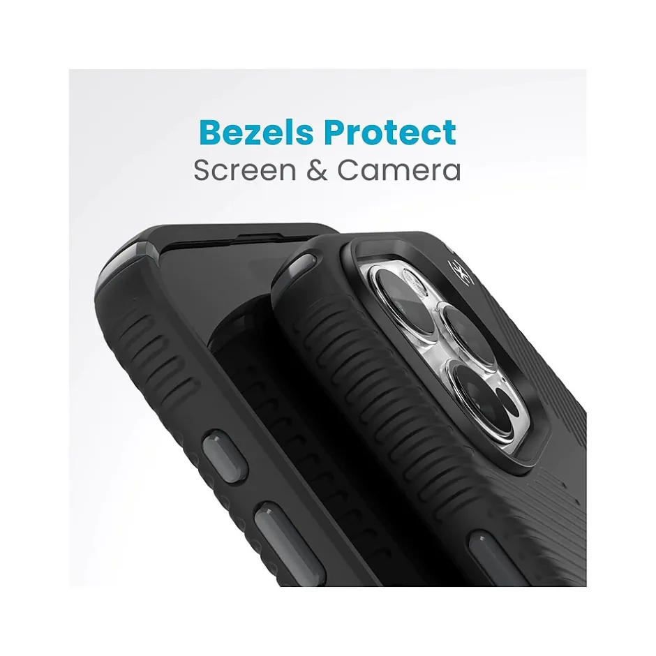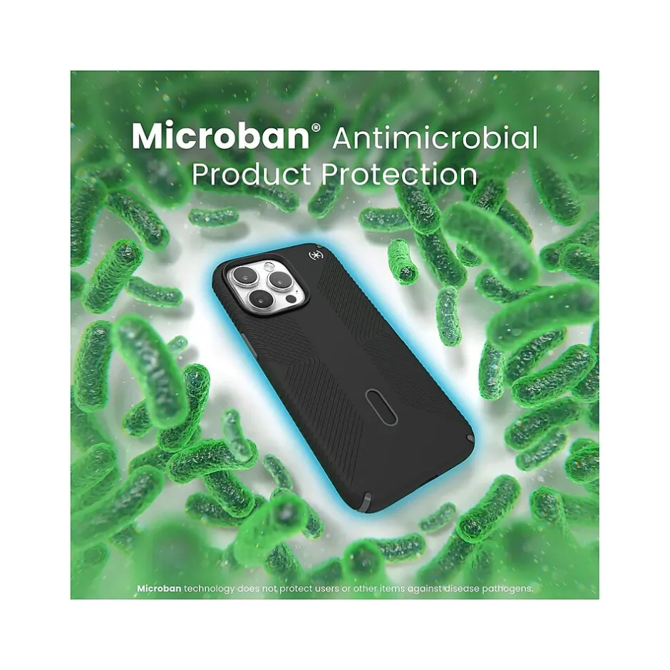 The Speck Presidio 2 Grip MagSafe with ClickLock case is 20% slimmer with no-slip inverted grips, provides 13′ drop protection, and is made from 50% recycled plastics. The case features ClickLock no-slip interlock technology, a MagSafe enhancer, and Microban antimicrobial product protection. Built specifically to work with all Apple MagSafe accessories.