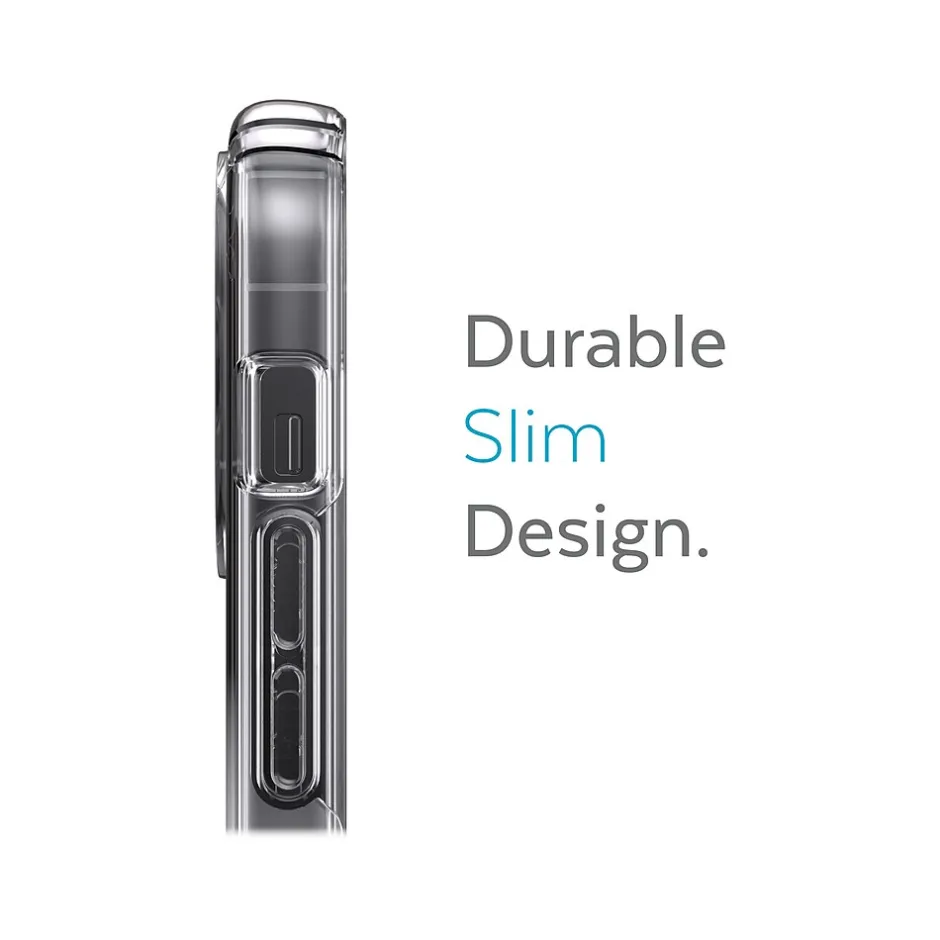 Speck Presidio Clear Ombre is the most clear protective case that Speck has designed so far. It features bold and stylish ombre patterns that are sure to bring style to your device. The innovative materials have allowed Speck to create a case that stays clear longer and provides more protection and durability. Not only is this case stylish, but also the clear impact technology makes it tough for rough moments. Speck’s proprietary clear phone-cushioning rubber compresses on impact to protect your phone and resist damage, protecting against drops up to 13′, so you’ll be confident knowing your phone will be protected. Durable yet slim, this case allows for easy wireless charging with MagSafe and Qi for a seamless charge. It also has a built-in antimicrobial treatment from Microban that delivers a 99% reduction in stain- and odor-causing bacteria on the case, creating a cleaner surface. If that wasn’t enough, the case also features a raised bezel. This added edge helps protect your screen from scratching and shattering in case your phone falls and lands facedown.