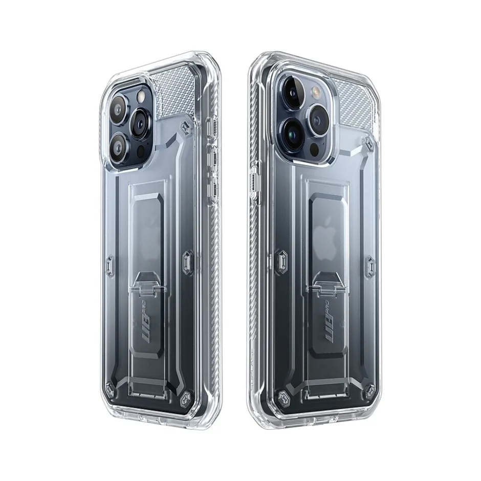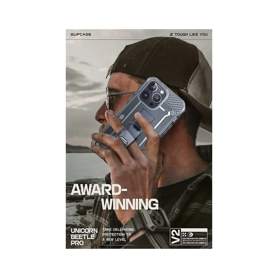 The SUPCASE Unicorn Beetle PRO rugged case ensures full-body protection for your iPhone 15 Pro Max (6.7″ screen). Features a dual-layer unbending polycarbonate back and impact-resistant TPU bumper. Port plugs keep out dust and debris.