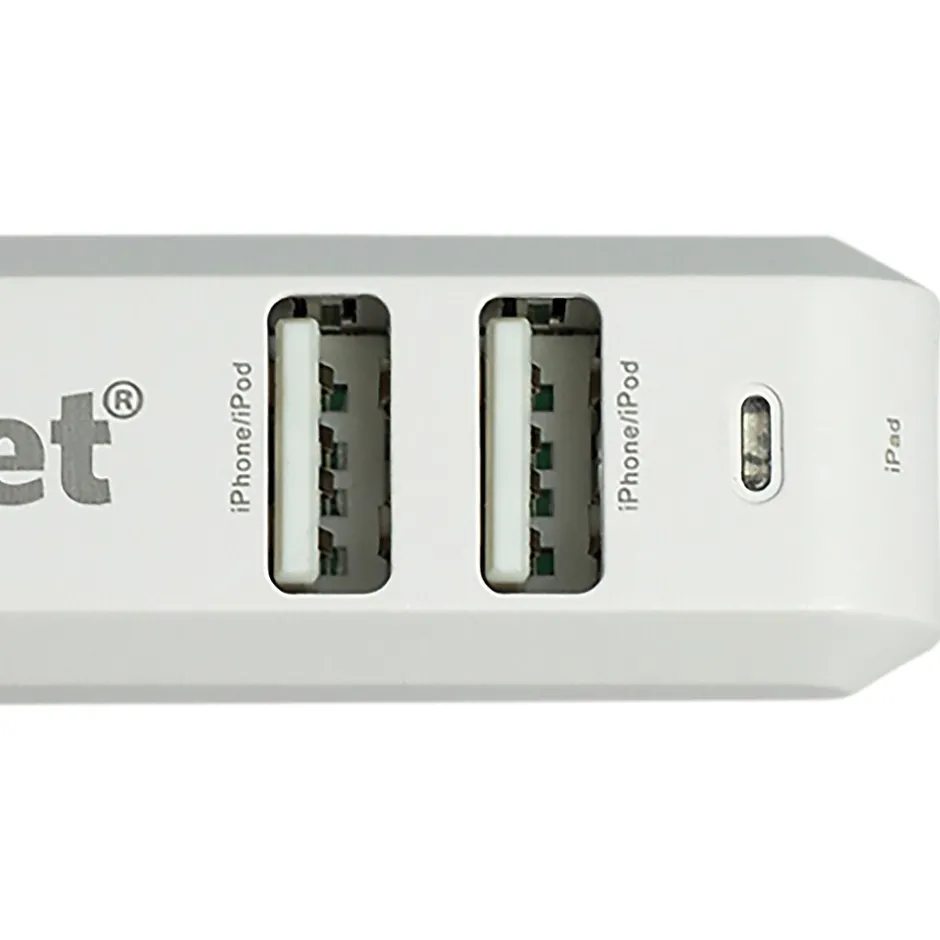 - 2 USB-A 1.2 amp ports and 1 iPad 2.4 amp port